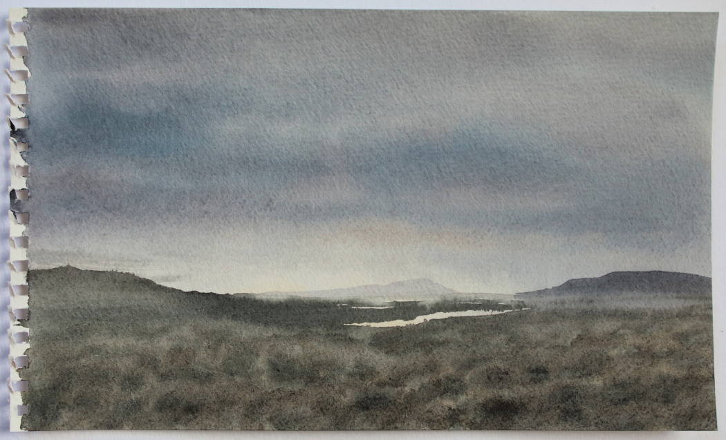 Efri: Við Hestfjall akvarella 24×36,5 2014