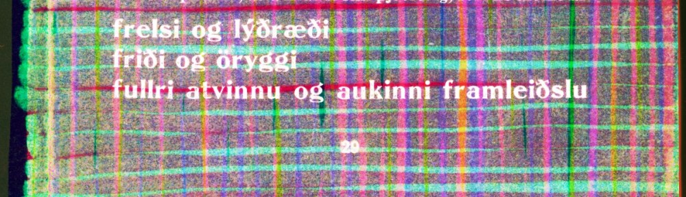 Efniviðurinn hér eru textar eins og þeir sem ég vinn með dagsdaglega, brot með ýmiskonar áherslum. Þeir eru meðhöndlaðir til sérstaks viðbótaráhersluauka með yfirstrikunum sem sjónrænt mynda þéttan vefnað.Tvívíður textinn fær því ávæning af þriðju víddinni – dýptinni. Fjórða víddin – tíminn – er þarna einnig enda er hið ritaða orð sjaldnast tímalaust – eða hvað?